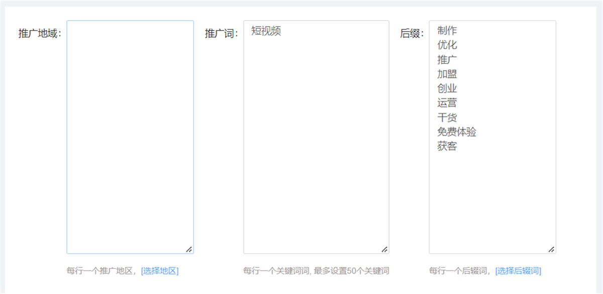 | 包含各大平台账号的授权,能同时授权多个平台多个账号,以及设置推广排名使用的关键词和地理位置。 |
