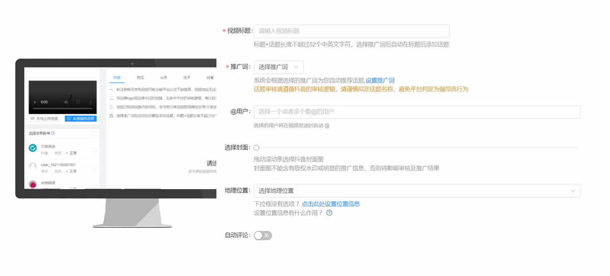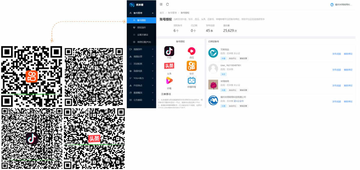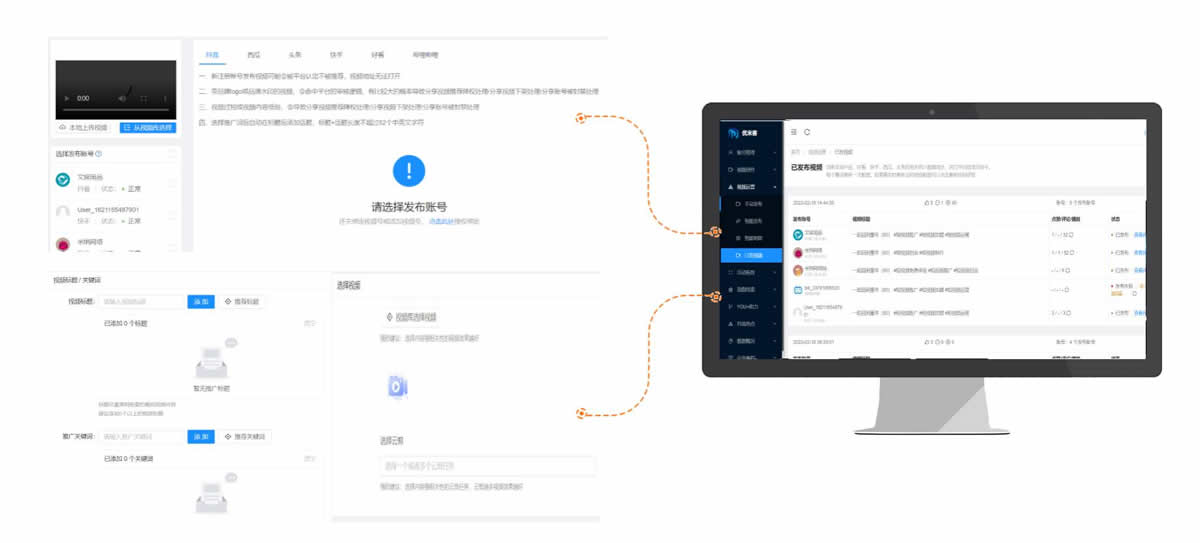 多种模式发布多平台视频,实时汇总发布视频和各大账号的详细数据监控。