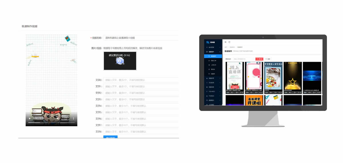 包含模板制作和智能剪辑2大类型的视频自动制作功能,极大减少了视频制作过程和效率! |